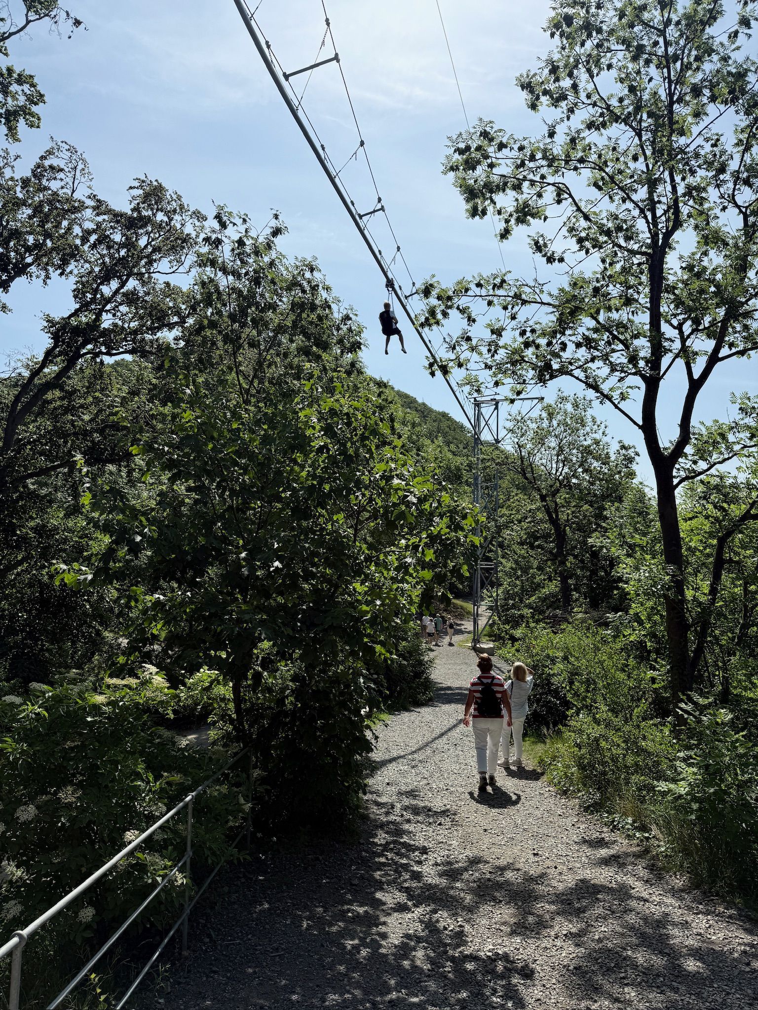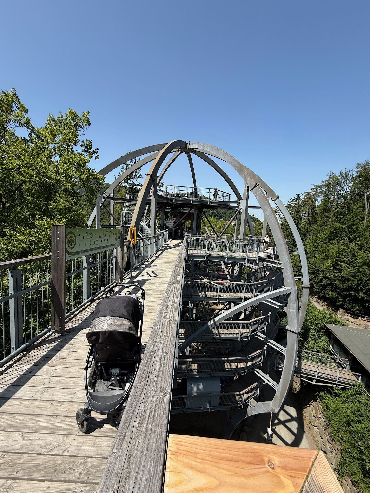 In direkter Nähe (700m) findet ihr die Seilbahn, die euch auf den Burgberg bringt von wo ihr entspannt zur Baumschwebebahn und dem Baumwipfelpfad gelangt.